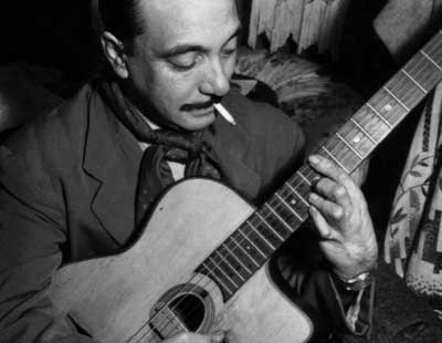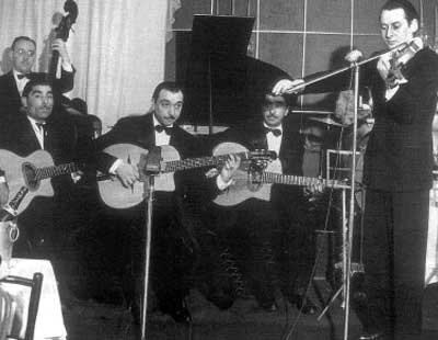 From the outcast and despised vagabond Romany people came Django (it means “I Awake”) who, unlike French musicians spellbound by American jazz but unable to progress beyond the mere copycat stage, was able, via his idiosyncratic guitar style, to graft jazz phrasing onto his own playing. With only two workable fingers on his left hand (the result of a Romany fire) he nevertheless forged a gypsy jazz that was all his own. And when he joined forces with violinist Stéphane Grappelli to form the Quintet of The Hot Club of France, a uniquely stringed creation flamed...for a while. The Quintet, argumentative and unstable, led by these two very different personalities, was never a lasting unit, much to the chagrin of the intense and musically entrenched Hot Club president, writer and critic Hugues Panassie. Freed now from those stormy times we are able, via recordings, to quietly enjoy the classic freewheeling and yet disciplined French jazz of Reinhardt, Grappelli, and his fellow swinger-stringers.