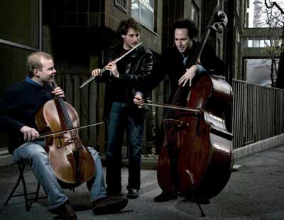 PROJECT Trio is Greg Pattillo (flute), Eric Stephenson (cello), and Peter Seymour (double bass).