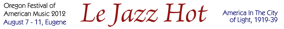 Oregon Festival of American Music 2012 celebrates the rich musical ferment of Paris during those heady decades and explores how that world interacted with, influenced, and was influenced by musical traditions form the United States and around the world. We’ll see how—from Mistinguett to Josephine Baker, from Maurice Chevalier to Cole Porter, from Sidney Bechet to Django Reinhardt, from Alexandre Stellio to Darius Milhaud—French chanson, American popular song and dance, jazz, gypsy folk, the sounds of Martinique and Brazil, and even art music crashed together marvelously and with wonderful results. Please join us!